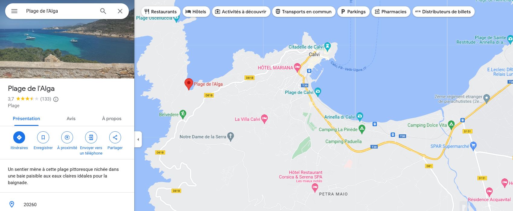 La plage de l’Alga (route d'Ajaccio)